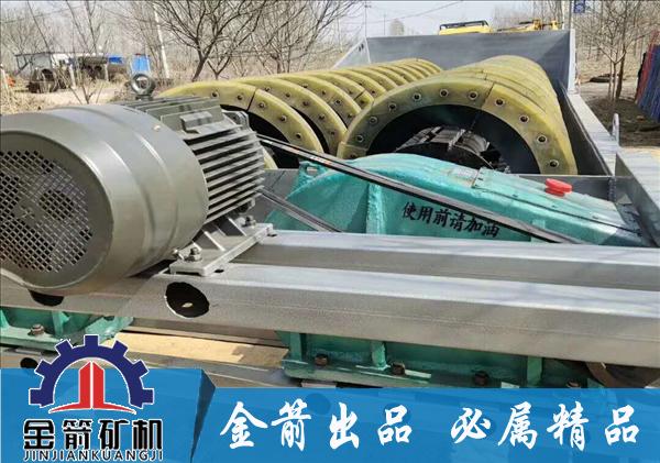 螺旋洗砂機(jī)是洗砂機(jī)的一種,主要通過(guò)設(shè)備內(nèi)的螺旋裝置對(duì)砂石料進(jìn)行攪拌,從而使砂石料中的泥土與水進(jìn)行混合,從設(shè)備上的流口排出,而砂石料則在螺旋裝置的作用下被逐步篩選,從頂端的出料口排出,從而實(shí)現(xiàn)了砂石料的清洗篩選效果。